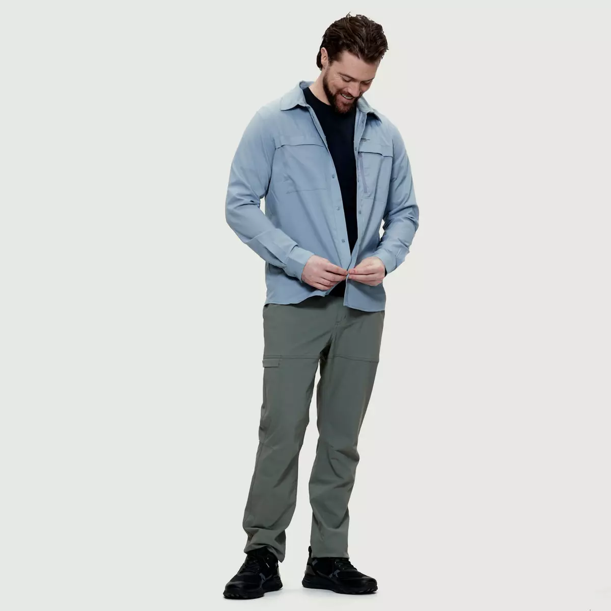 La chemise à manches longues Gaspé pour hommes marie avec succès élégance et praticité. Fabriquée à partir de 100% de polyester recyclé, elle offre légèreté et flexibilité. Sa conception respirante, résistante au froissage, et dotée de propriétés d’évacuation de l’humidité maintient le corps à une température naturelle d’environ 37 degrés, avec une protection solaire de 40 FPS contre les rayons nocifs du soleil. Polyvalente et durable, la chemise Gaspé s’adapte à diverses activités telles que la randonnée, la marche, le camping, le voyage et les vacances. Avec son design fonctionnel et deux poches pratiques, elle convient également pour une journée au bureau, offrant un style adapté à toutes les occasions.
